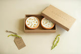 Set of two soy wax urlis. The ceramic candles are packed in our classic brown box, finished with a thread and tag.