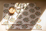 Simple and earthy, this hand blocked set is versatile in its design and will accentuate most side tables.